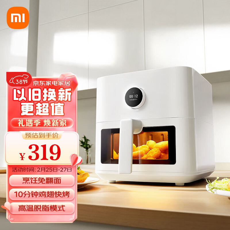 米家小米空气炸锅5.5L可视版 可视化窗设计 烹饪免翻面 创新脱脂模式 24H长效预约 10分钟鸡翅快烤价格:319.00元!