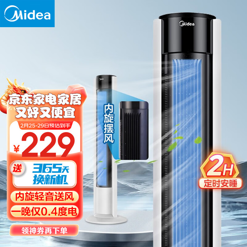 美的(Midea)电风扇家用风扇定时塔扇立式无叶落地扇智能摇头轻音节能降温柔风自然风电扇 【内旋摆风】10B价格:299.00元!