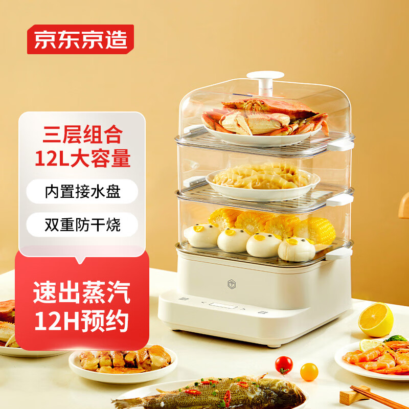 京东京造 电蒸锅 多功能家用早餐包子 蒸包子可预约透明可视不锈钢蒸架 自由定时快出蒸汽 生日礼物女价格:158.90元!