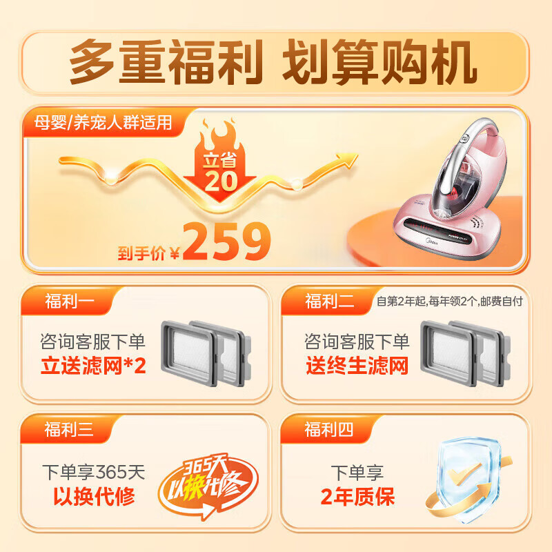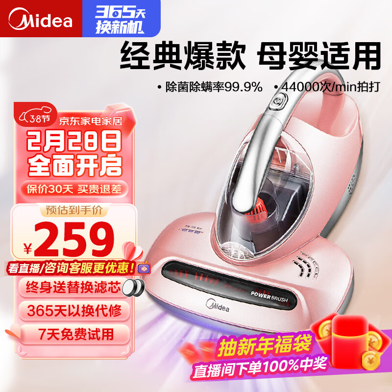 美的(Midea)除螨仪家用 紫外线除螨杀菌 床上手持吸尘 50℃热风除湿 B3 卧室除湿价格:259.00元!