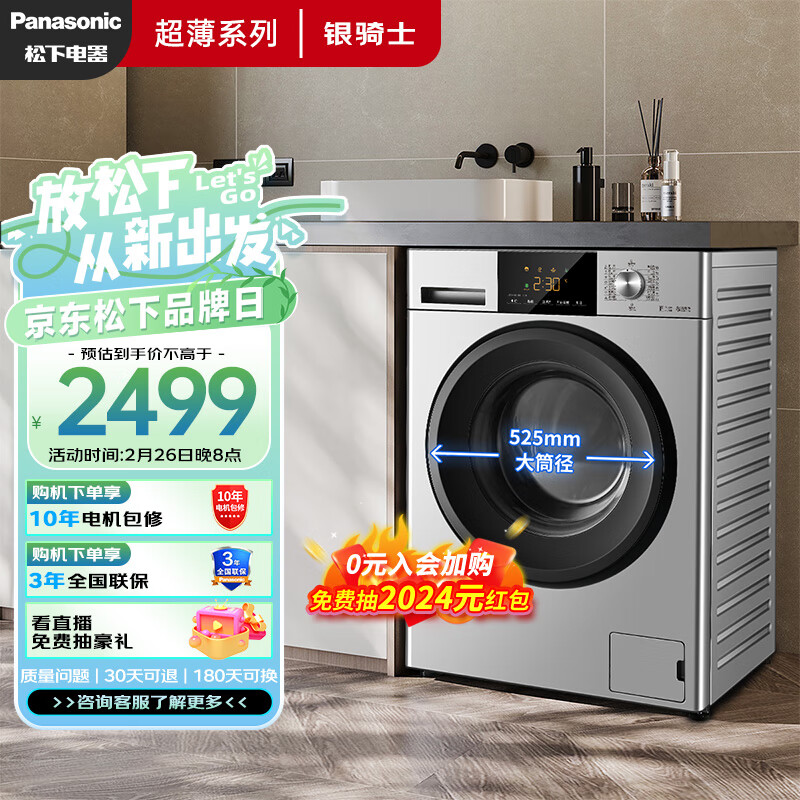 松下(Panasonic)滚筒洗衣机全自动 超薄全嵌 【银骑士旗舰版】10公斤 泡沫净祛渍 户外服洗 XQG100-3N1S价格:2499.00元!