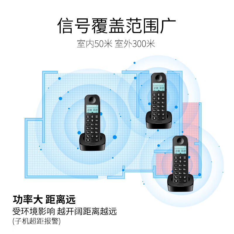 飞利浦(PHILIPS)无绳电话机 无线座机子母机家用办公中文大音量持久待机 DCTG160单机 黑色价格:169.00元!