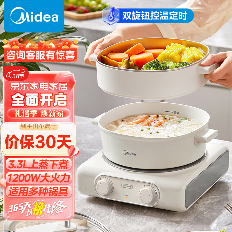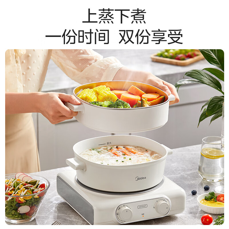 美的(Midea)电煮锅 电火锅 电炒锅 电蒸锅 火锅锅 分体式 家用多功能 电热锅 多用途锅 四季小嗨锅 DHC232312价格:229.00元!
