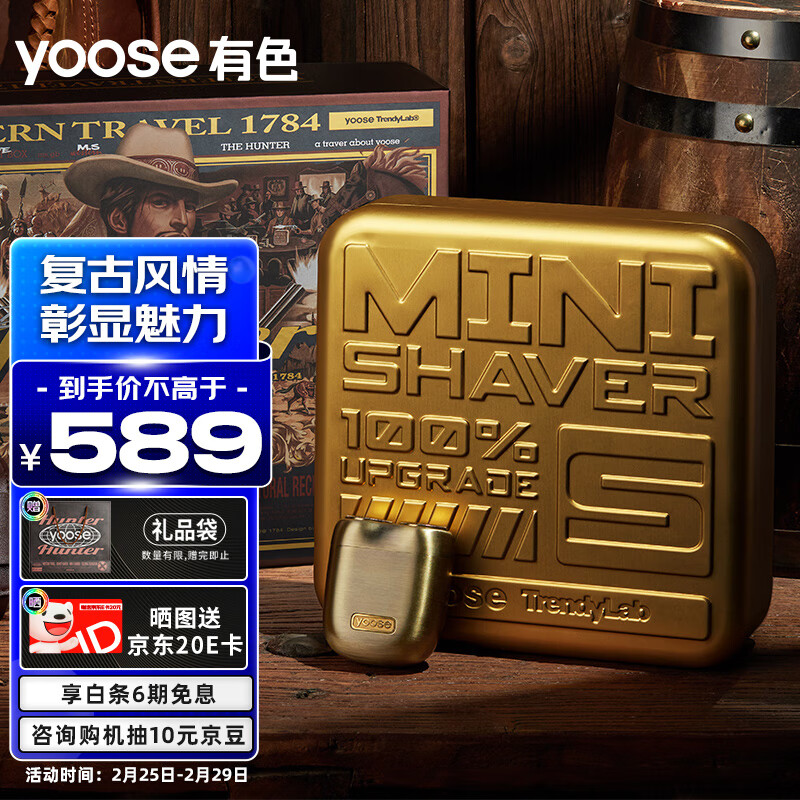 有色(yoose)电动剃须刀 迷你便携刮胡刀 送男友老公新年生日情人节礼物 胡须刀礼盒 赏金猎人款价格:689.00元!