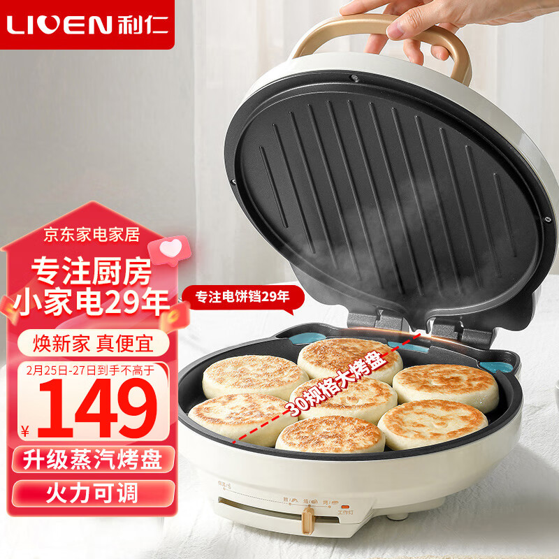 利仁(Liven)电饼铛家用加深烤盘双面加热电饼档电烙饼锅三明治早餐机电煎锅蒸汽煎烤 煎烙烤+保温 LR-J3077价格:149.00元!
