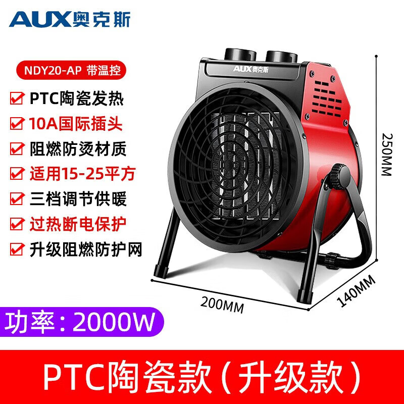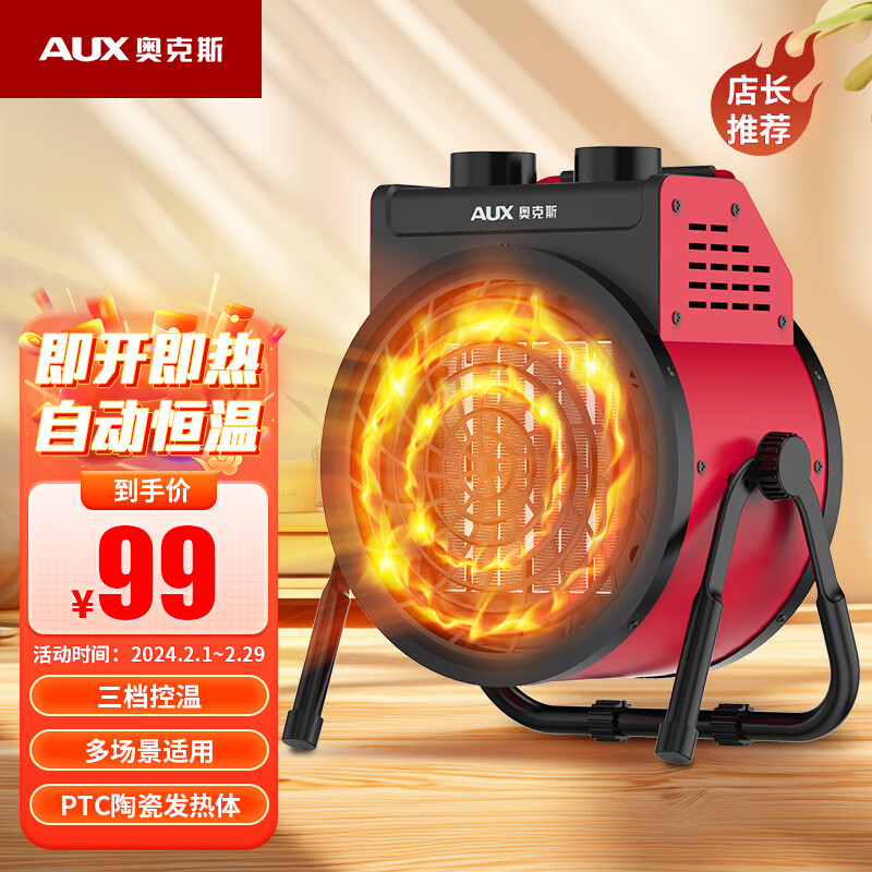 奥克斯(AUX) 暖风机工业取暖器家用节能小钢炮大功率热风机速热省电暖器暖风器 220V 2000瓦(工业家用陶瓷款)价格:169.00元!