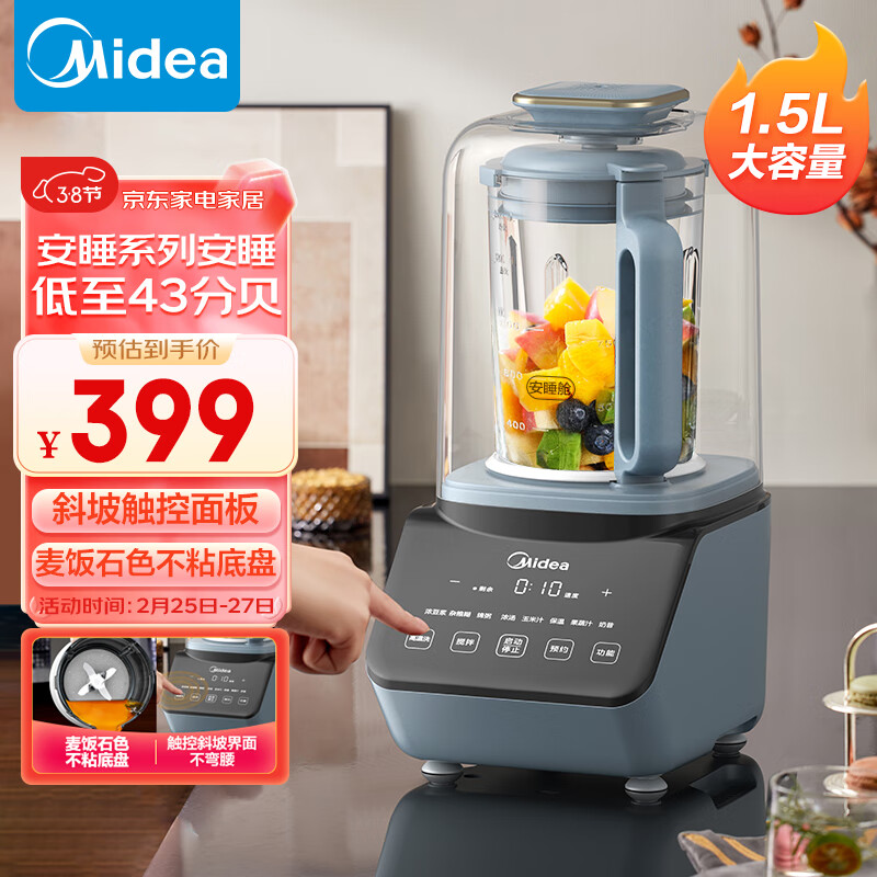 美的(Midea)1.5升低音破壁机大容量家用豆浆机降噪静柔音榨汁料理机MJ-BL80SJ52价格:429.00元!