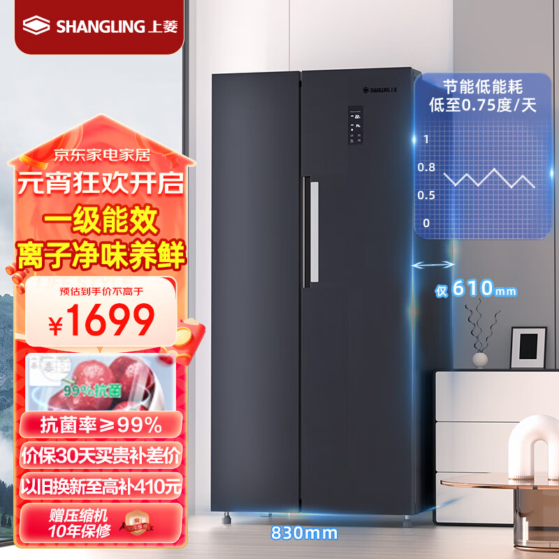 上菱461升双开门冰箱对开门风冷无霜型一级能效变频超薄 深 60cm 左右家用大容量电冰箱BSE461PWL价格:1699.00元!