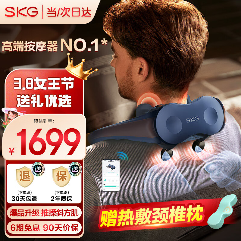 SKG颈椎按摩器热敷按摩仪披肩揉捏斜方肌肩颈腰背腿物理揉捏 三八女神节妇女节实用礼物送男女友老婆 【四手揉捏-红光热灸】 H7豪华价格:1899.00元!