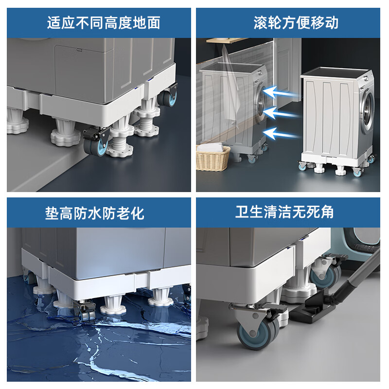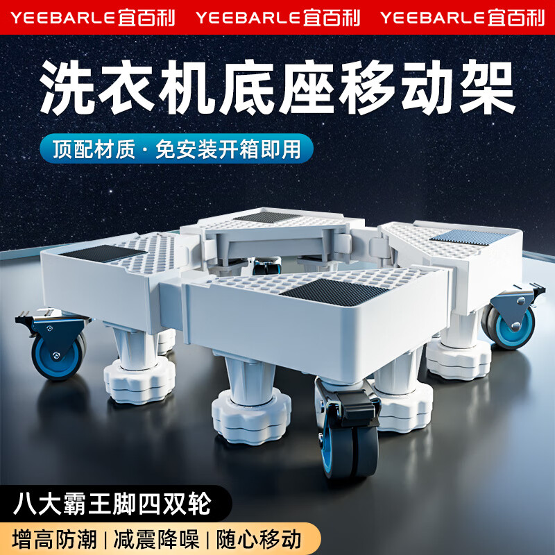宜百利洗衣机底座 空调冰箱垫高支架波轮滚筒洗衣机加高万向移动架子海尔西门子防滑防震托架8脚4轮7319价格:149.00元!