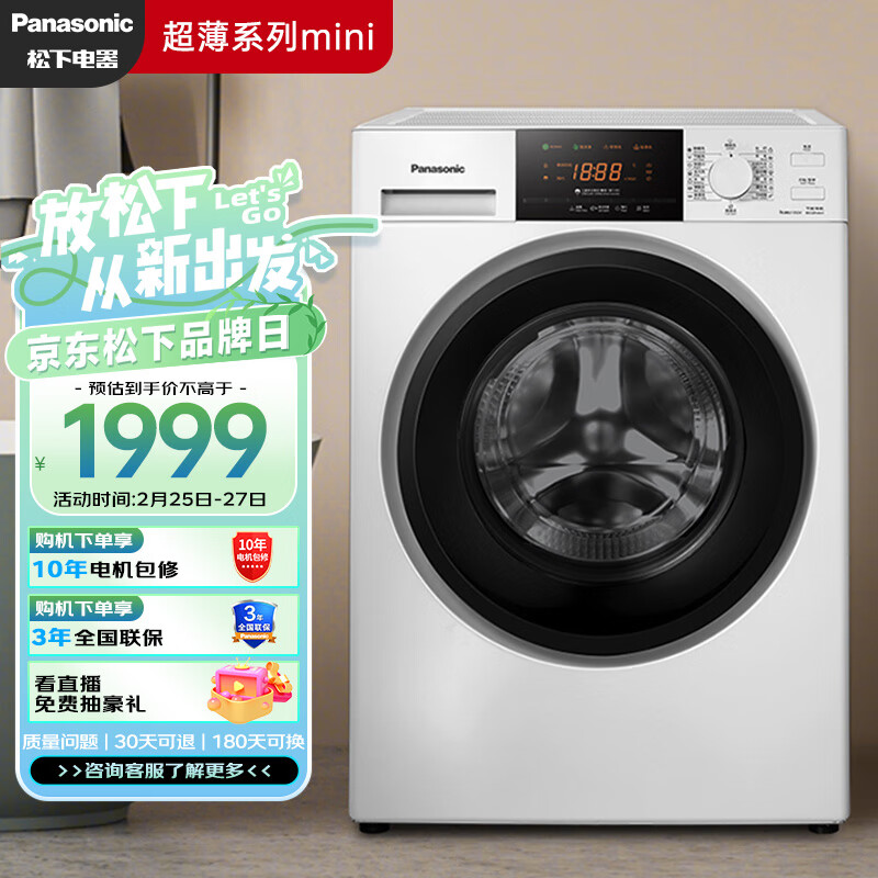 松下(Panasonic)滚筒洗衣机白色全自动8kg 变频电机节能省电 泡沫净强劲去污 筒清洁 6项智控 XQG80-3GQE2价格:1999.00元!
