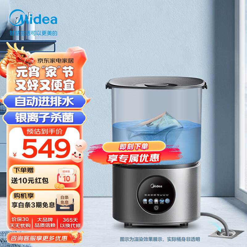 美的(Midea)内衣内裤分桶洗衣机便携式婴儿童衣服清洗机1.5KG触控迷你洗袜子神器 (一机一桶)MFB15-I31S价格:549.00元!