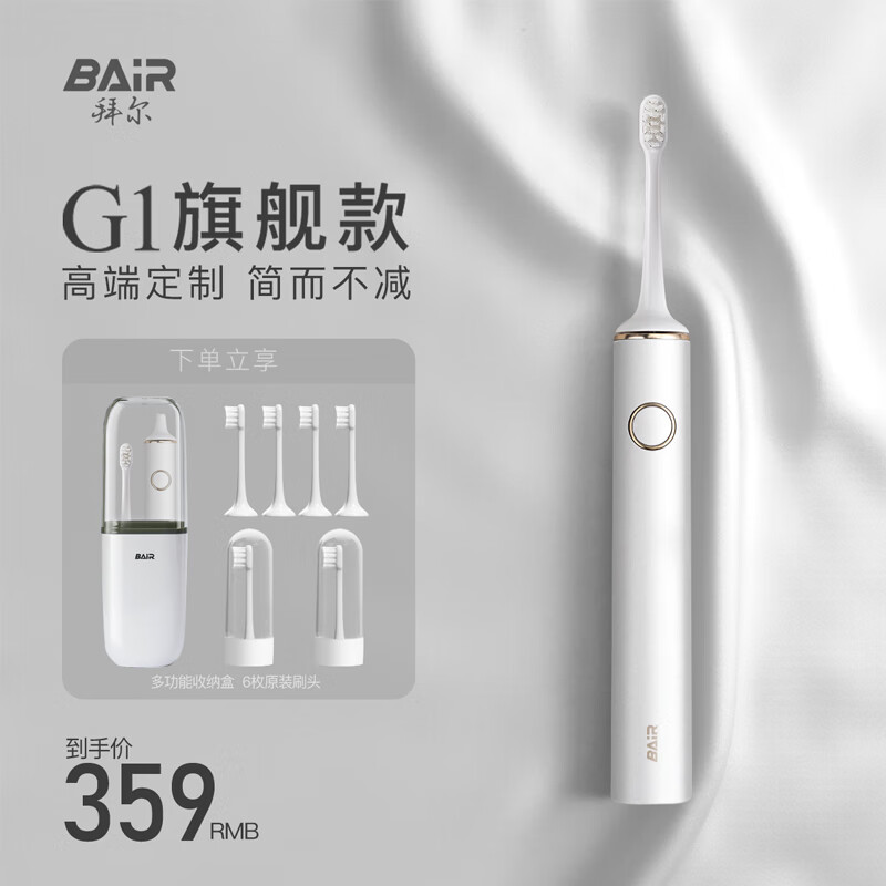 拜尔G1 豪华定制版电动牙刷成人充电智能声波便携情侣款套装自动男女士 送朋友 礼盒装 学生38节礼物价格:369.00元!