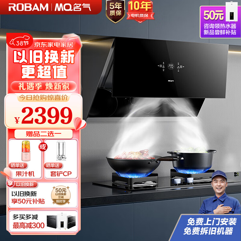 名气(MQ)老板抽油烟机烟灶套装23大吸力家用侧吸烟机燃气灶具套装天然气2570A+6812BT价格:2399.00元!