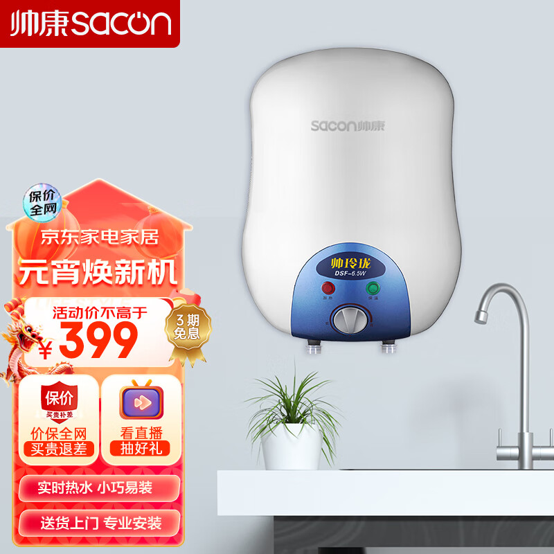 帅康(Sacon)6.5升储水式家用小型电热水器厨宝 1500W节能速热 多重防护电热水器(下出水)DSF-6.5WX价格:399.00元!