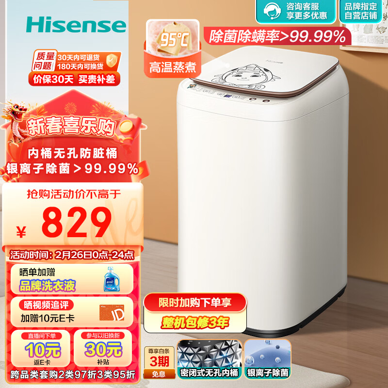 海信(Hisense)小哈利波轮洗衣机全自动 3公斤迷你洗衣机小 儿童婴儿洗衣机 无孔内桶高温煮洗HB30DF645M以旧换新价格:829.00元!