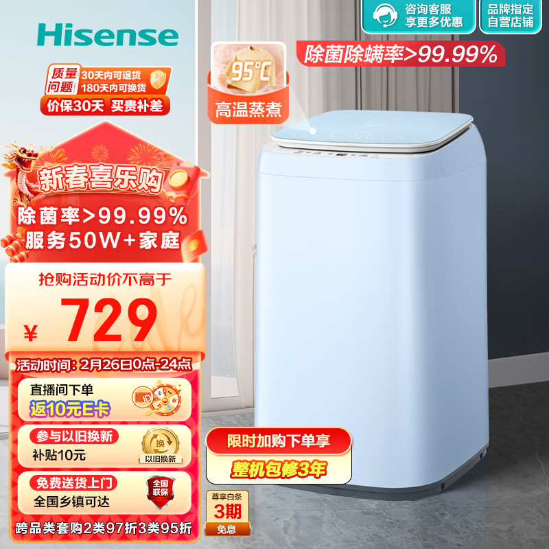 海信(Hisense)小哈利波轮洗衣机全自动 3公斤迷你洗衣机小型 儿童婴儿内衣洗衣机 高温蒸煮XQB30-M108LH以旧换新价格:729.00元!