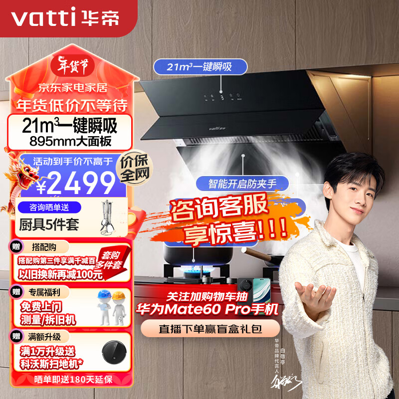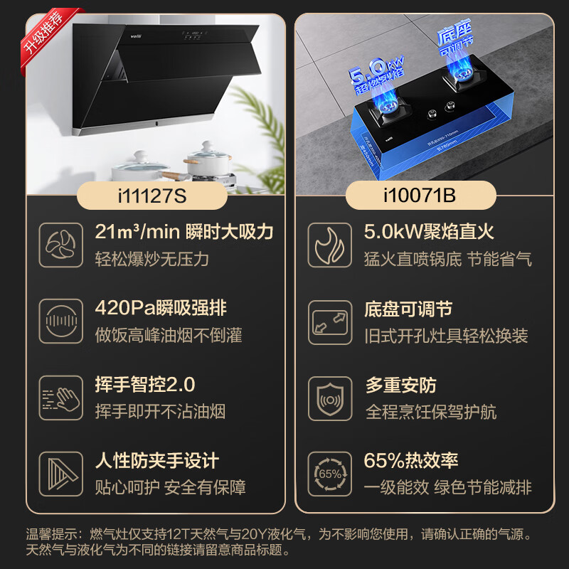 华帝(VATTI)抽油烟机家用大吸力排油烟机燃气灶烟灶套装21风量侧吸吸油烟机灶具套装i11127S天然气价格:2499.00元!