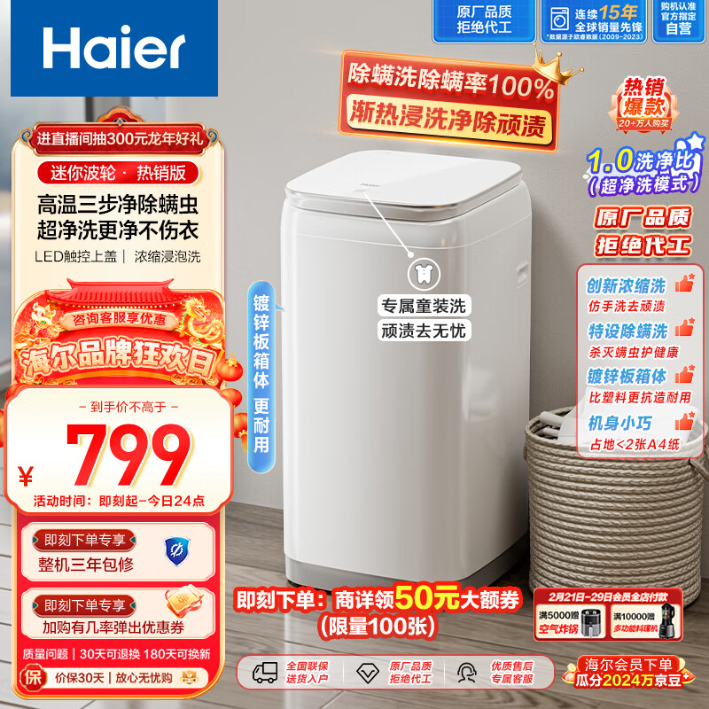 海尔(Haier)婴儿洗衣机 波轮迷你洗衣机 儿童宝宝洗衣机 内衣洗衣机 3公斤除菌除螨99.9% 超净洗XQBM30-R368价格:849.00元!