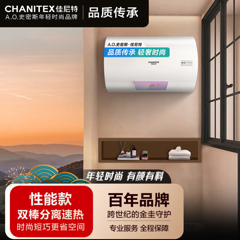 史密斯(A.O.SMITH)佳尼特60升电热水器 金圭内胆包8年 双棒分离速热 可遥控大屏 储水式 短款 CTE-60TT-B 一级能效价格:1548.00元!