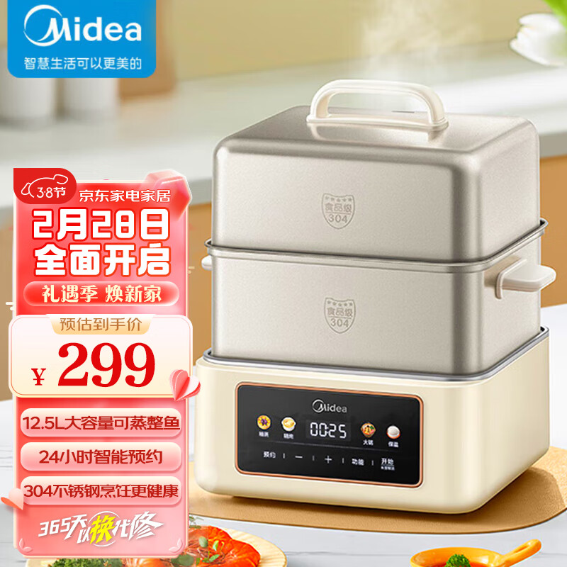 美的(Midea)电蒸锅 电煮锅电火锅 火锅多功能锅家用蒸包子锅 电热锅多用途锅24小时预约双层蒸笼MZ-ZGC262388价格:299.00元!