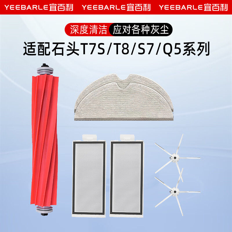 宜百利 适配石头扫地机器人配件 适用石头T7S/T8/S7/Q5主刷拖布边刷滤网超值7件套 3719价格:116.62元!