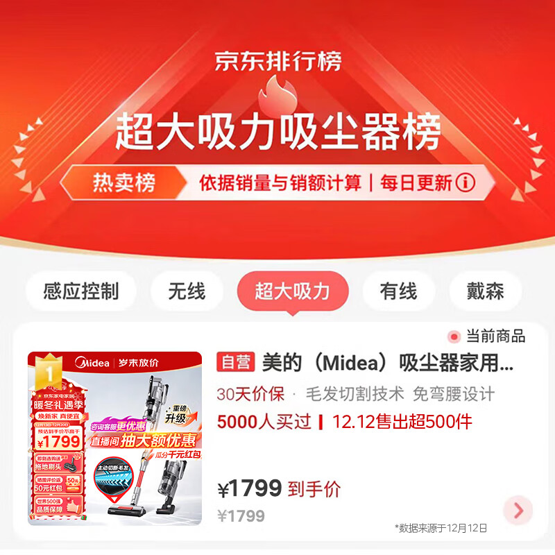 特色功能:毛发防缠绕,电池可拆卸,一键倒尘,LED屏显,感应控制
