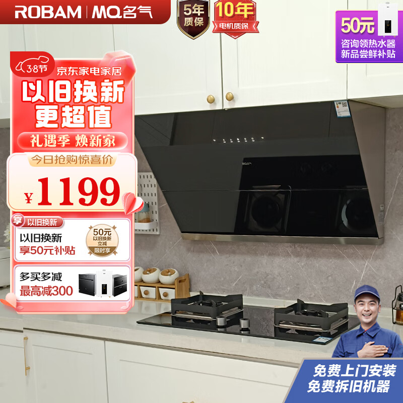 名气老板抽油烟机家用侧吸式油烟机大吸力脱排油烟机厨房单烟机低噪挥手智控21立方米2535A免费安装价格:1199.00元!