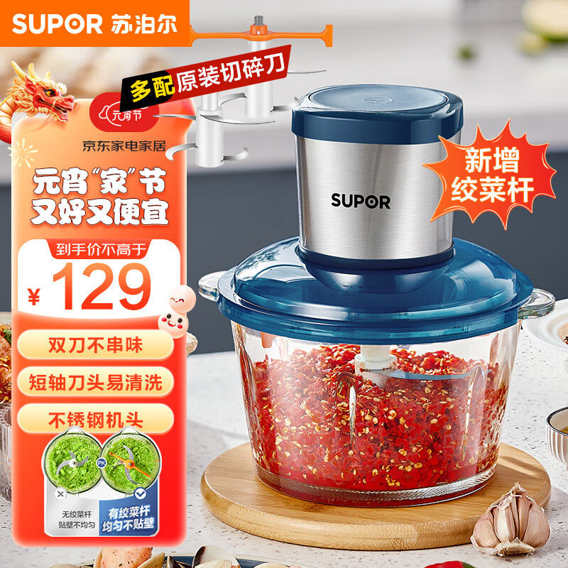 苏泊尔(SUPOR)绞肉机家用 辅食机 绞馅机 电动多功能料理机婴儿打泥机碎肉切菜搅拌机JR53S-U价格:129.00元!