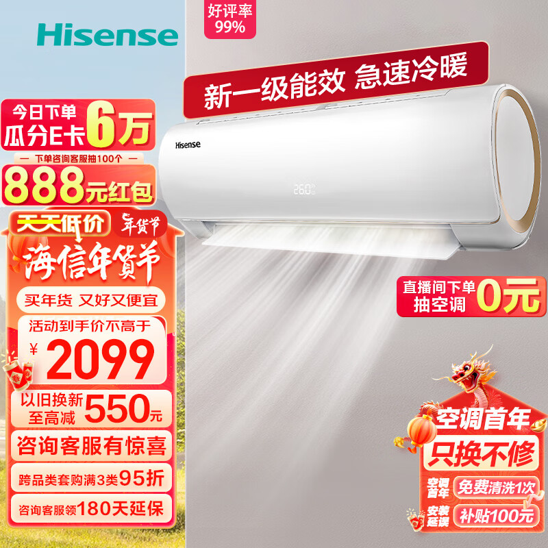 海信(Hisense)1.5匹速冷热新一级能效变频冷暖APP智控壁挂式卧室空调挂机KFR-33GW/EF20A1价格:2099.00元!
