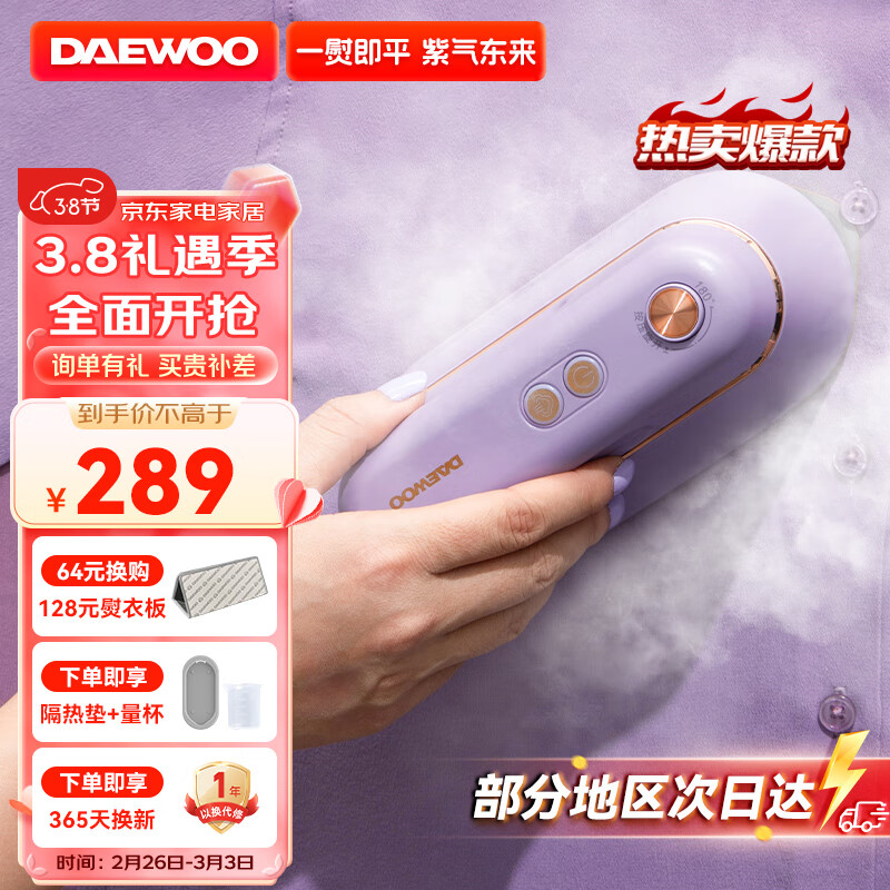大宇(DAEWOO)挂烫机家用蒸汽电熨斗熨烫机 手持挂烫机熨衣机旅游出差便携式小型除菌除螨熨斗HI-029-ZI价格:289.00元!
