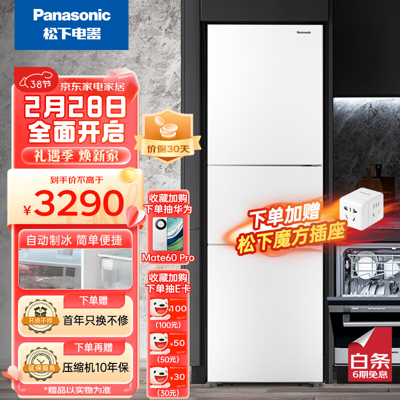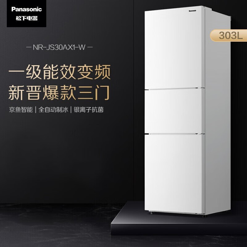 松下(Panasonic)303升三门冰箱京东小家智能生态一级能效银离子kang菌自动制冰家用冰箱NR-JS30AX1-W优选以旧换新价格:3090.00元!