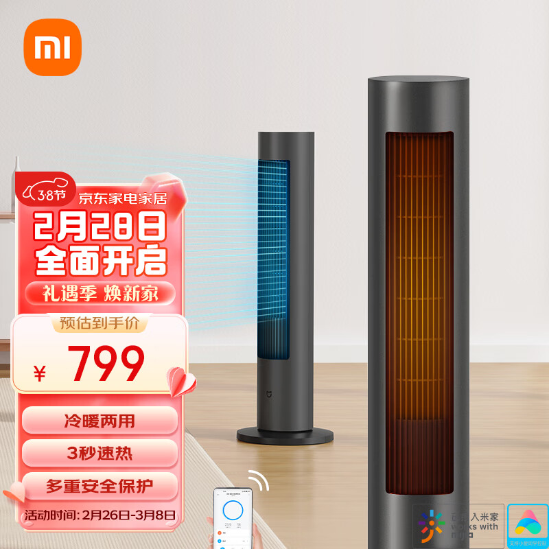 米家 小米两季扇冷暖扇 塔扇电风扇 取暖器暖风机电暖器冷暖两用家用速热 大广角远距离送风三种模式价格:799.00元!