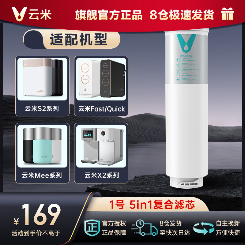 云米(VIOMI) 升级款云米净水器滤芯适配机型S2、Fast3、X2、Quick5、MeePlus、澎湃/Fast 1000G 1号5in1滤芯(不支持小蓝调/小白龙/小海豚)价格:169.00元!