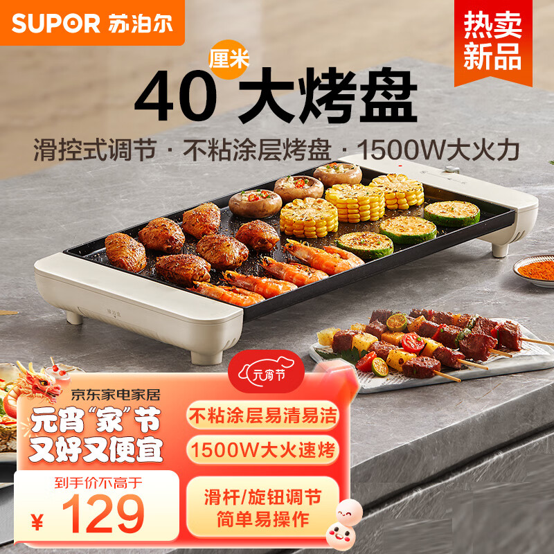 苏泊尔(SUPOR)电烤炉烤肉锅家用多功能大功率轻油少烟大容量4-6人不粘电烤盘烤肉机GJ4025P806价格:129.00元!