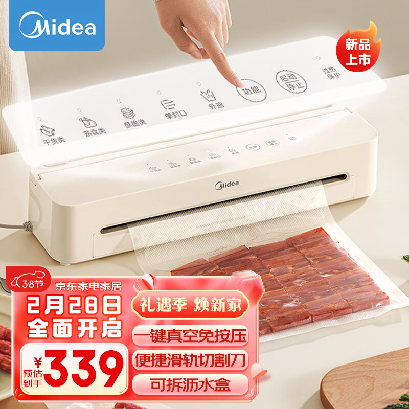 美的(Midea)真空包装机抽真空封口机家用小型干湿两用真空保鲜机食品塑封机密封机MJ-KF51价格:339.00元!