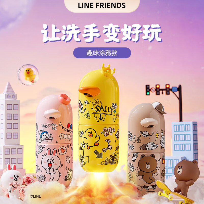 小卫&I LINE FRIENDS联名自动洗手机套装 儿童智能泡沫洗手机 温和亲肤 防水超长续航 莎莉涂鸦充电款价格:169.00元!