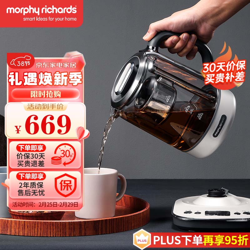 摩飞电器(Morphyrichards)养生壶煮茶器煮茶壶智能升降电水壶烧水壶电热水壶迷你玻璃花茶壶黑茶 MR6088白价格:669.00元!