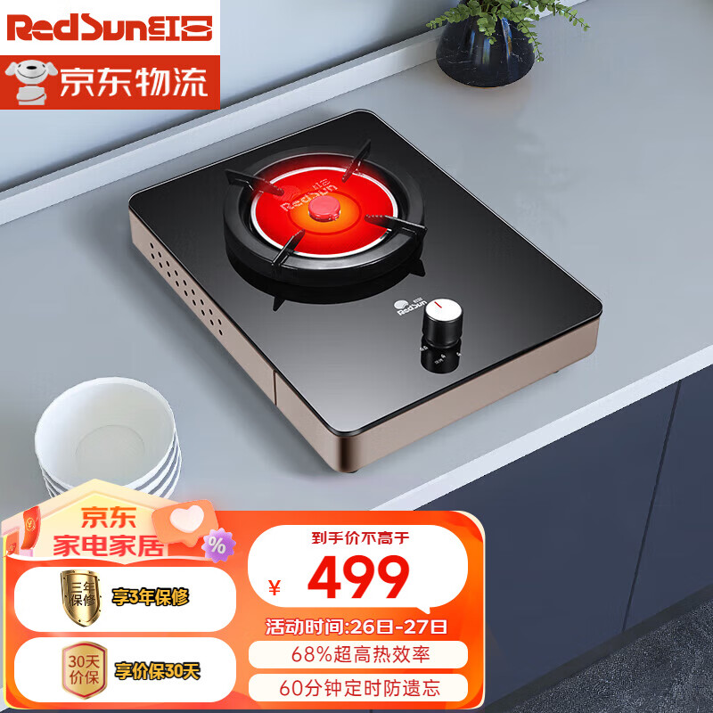 红日(RedSun)红外线燃气灶家用单灶 液化气 高端台式68%热效率 定时防干烧 JZY-ED009B(液化气)价格:499.00元!