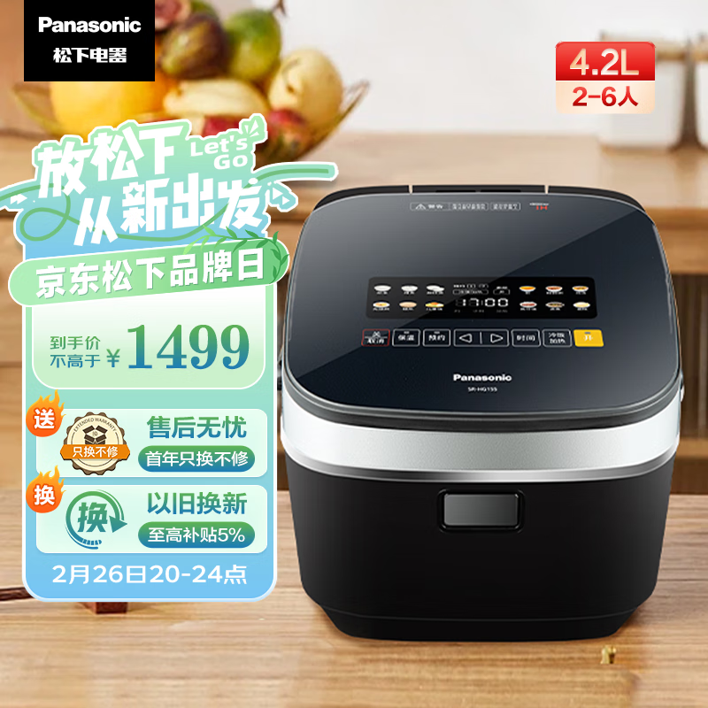 松下(Panasonic)4.2L电饭煲 IH电磁加热电饭煲 玻屏触控面板 一键式可拆洗 不锈钢内盖 SR-HG155价格:1499.00元!