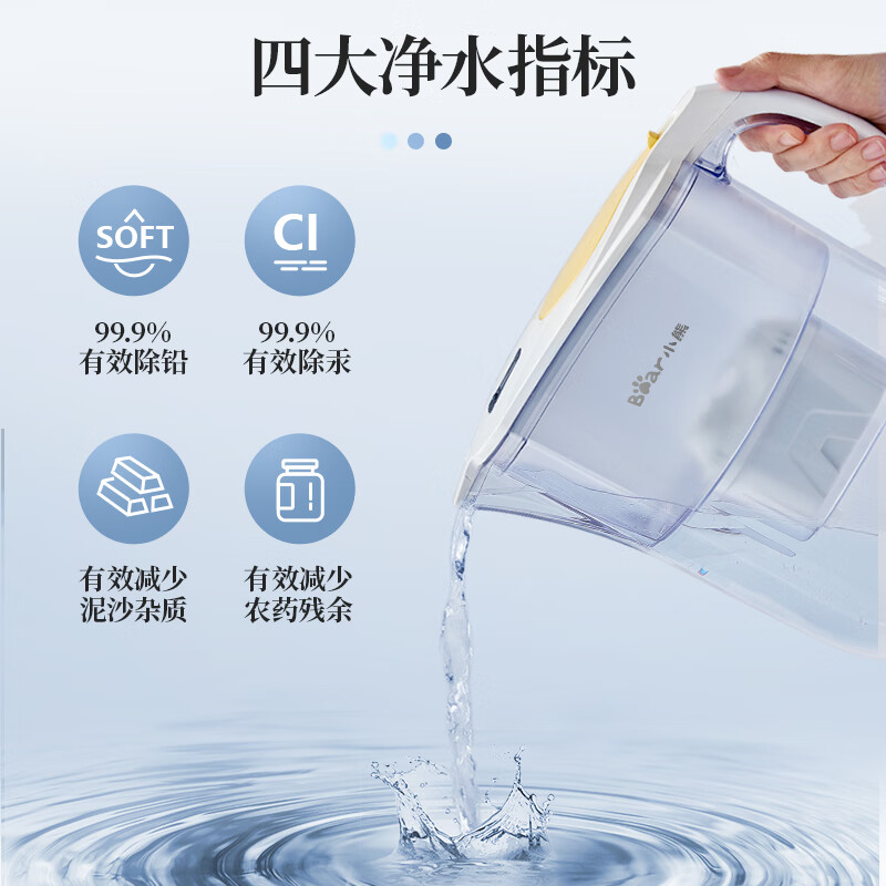 小熊(Bear)滤水壶 过滤净水器 家用净水壶 4.2L大容量过滤壶 四重过滤滤芯 过滤水壶 CX-E0082价格:99.00元!