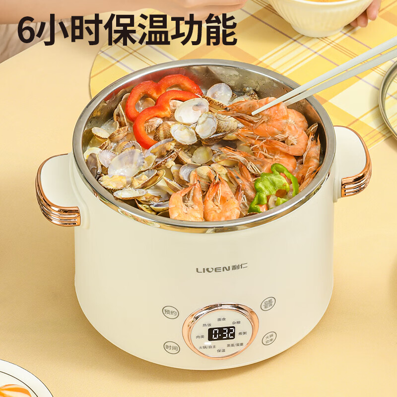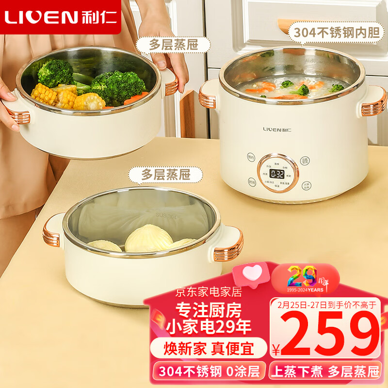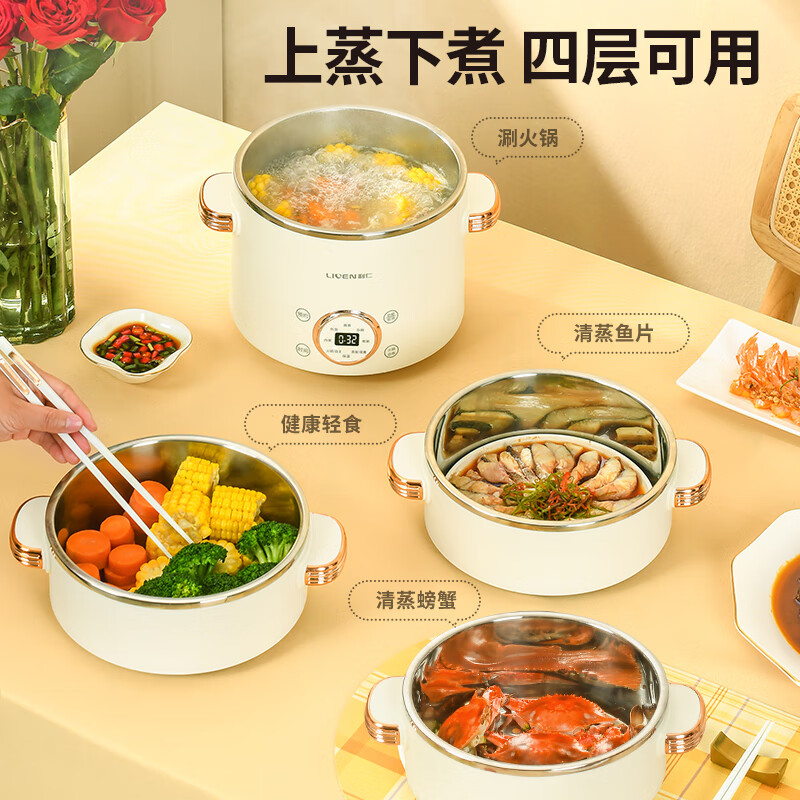 利仁(Liven)多功能电蒸锅电火锅电煮锅电热锅可涮可蒸4层8升多用途锅电蒸笼304不锈钢蒸屉DZG-D8016价格:259.00元!