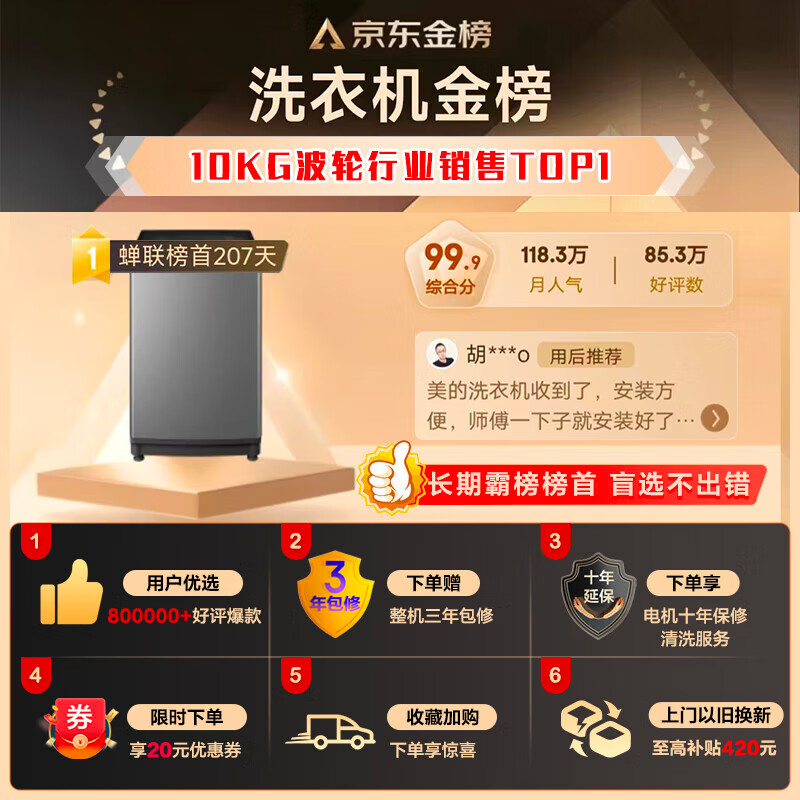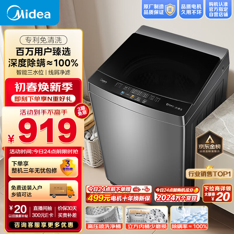 美的(Midea)波轮洗衣机全自动 V13B 10公斤 健康除螨 专利免清洗 十年桶如新 随心洗系列 MB100V13B价格:939.00元!