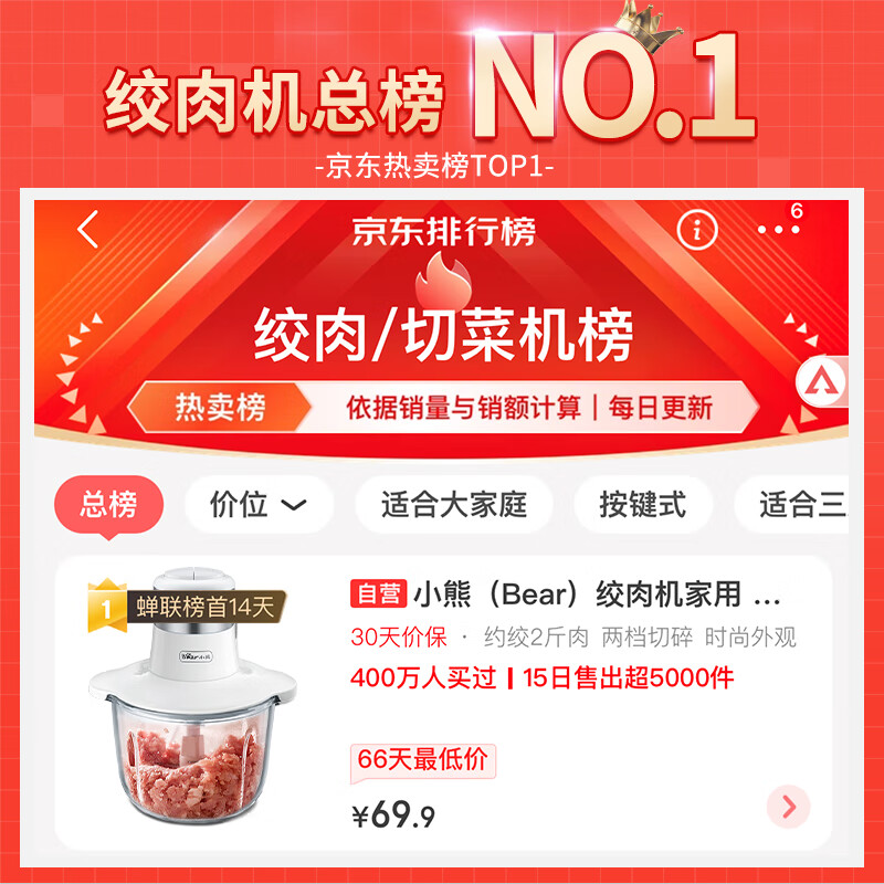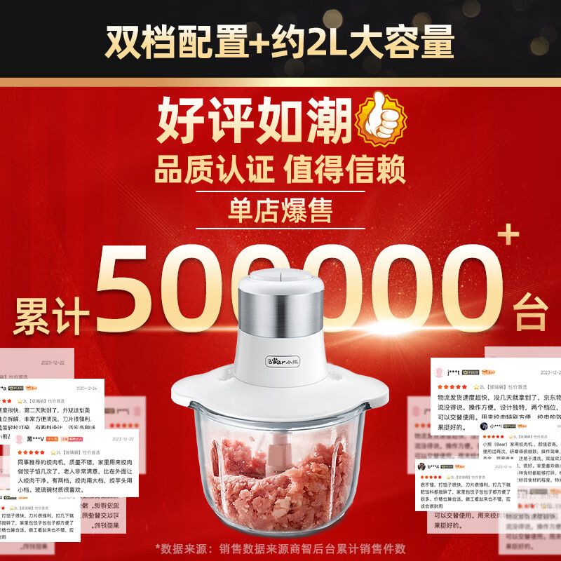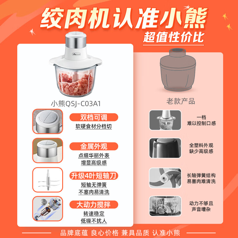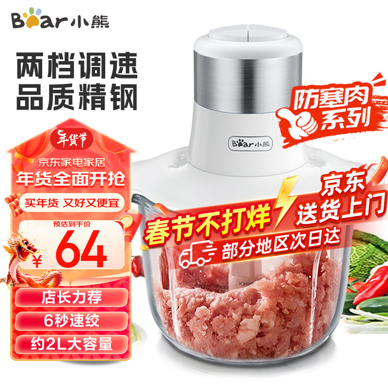 小熊(Bear)绞肉机家用 绞馅机 碎肉机 电动多功能料理搅拌机打肉机饺子肉馅蒜蓉机 搅肉机QSJ-C03A1 约2L价格:64.00元!
