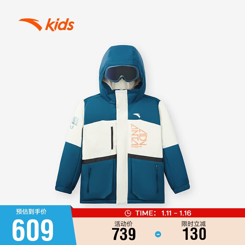 安踏儿童羽绒服童装男大童冬季加绒保暖防风眼镜款外套352346940N价格:739.00元!