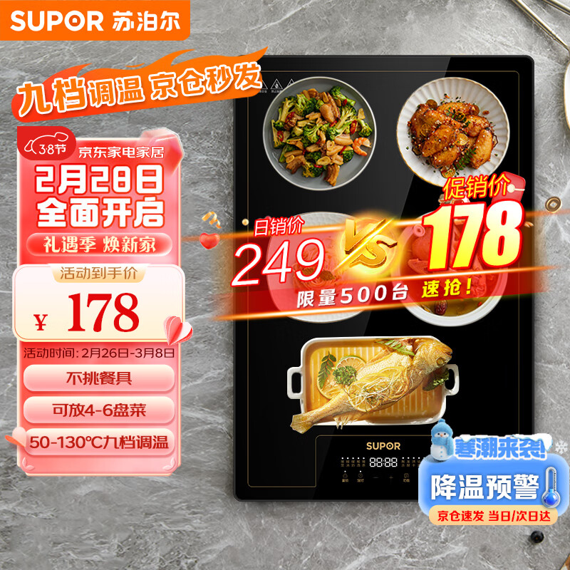 苏泊尔(SUPOR)暖菜板 饭菜保温板热菜板 加热桌垫菜板 烘干暖酒定时童锁热菜神器(方形) BF6040A802价格:178.00元!