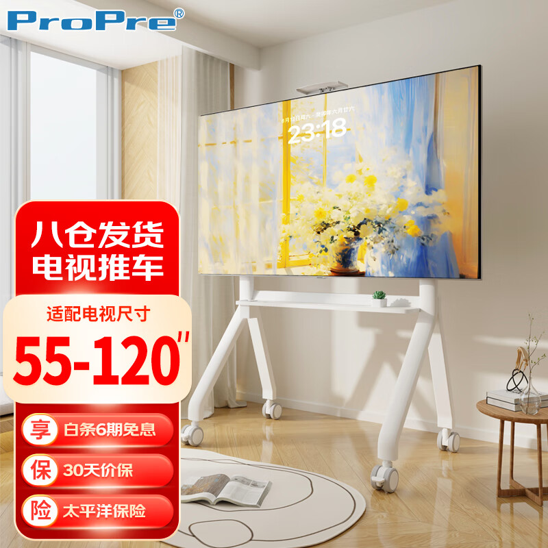 ProPre 55-120英寸电视机移动推车 视频会议电视挂架 广告机商显屏电视支架教学机一体落地支架挂架-白色价格:780.00元!
