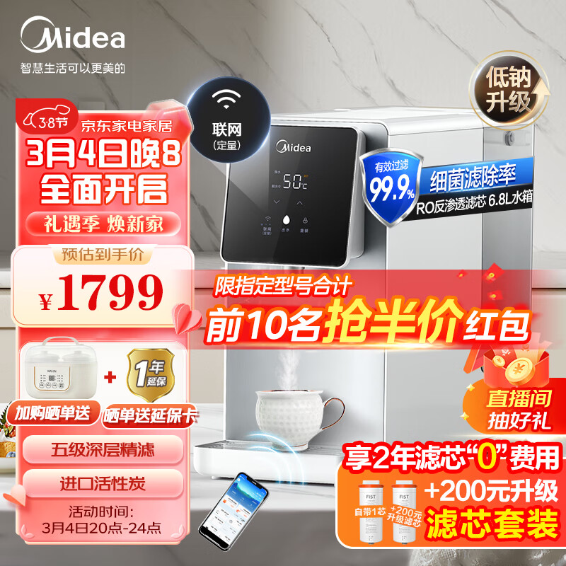 美的(Midea)白泽Pro台式加热净水器低钠净饮机饮水机即热式直饮机净饮一体机远程智控RO反渗透 JR2183T-RO价格:1799.00元!