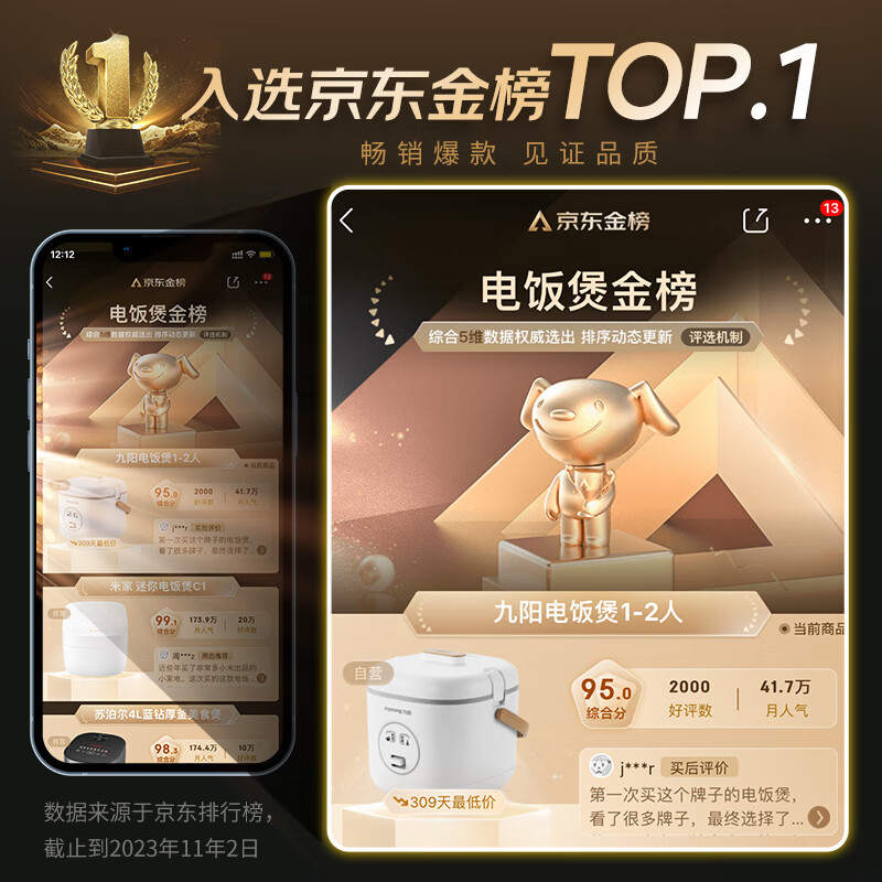 九阳(Joyoung)电饭煲1-2人小型迷你不粘内胆多功能家用小功率1.2L电饭锅 F-12FZ618价格:89.90元!