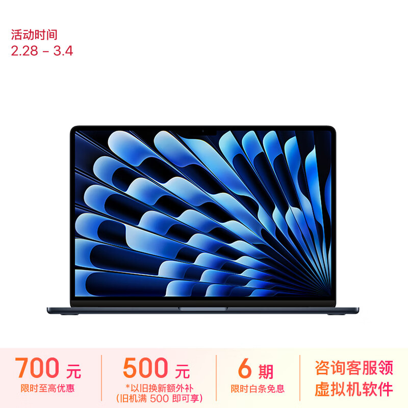 Apple/苹果2023款MacBookAir 15英寸 M2(8+10核)16G 256G午夜色轻薄笔记本电脑Z18T0002E【定制】价格:11999.00元!